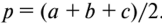 Шаг 1. Вычислить полупериметр треугольника: ![]()