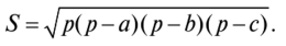 Например, вычислить площадь треугольника по трем сторонам (а,b,с).