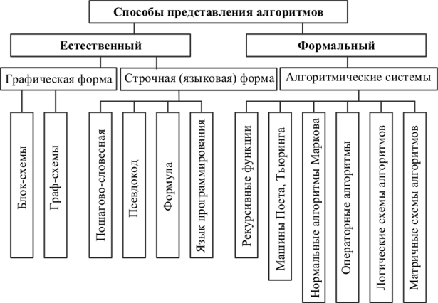 Все варианты представления алгоритмов могут быть объединены в единую классификационную схему, изображенную на рис. ниже.