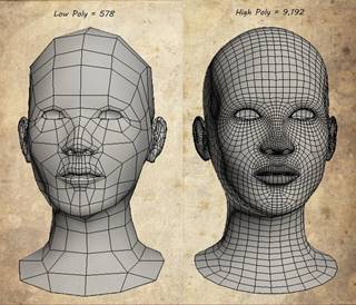 Для создания трёхмерных объектов наиболее распространённым способом является построение фигур из сетки полигонов (polygon). Полигон характеризуется вершинами (vertices), рёбрами(edges), гранями (faces).